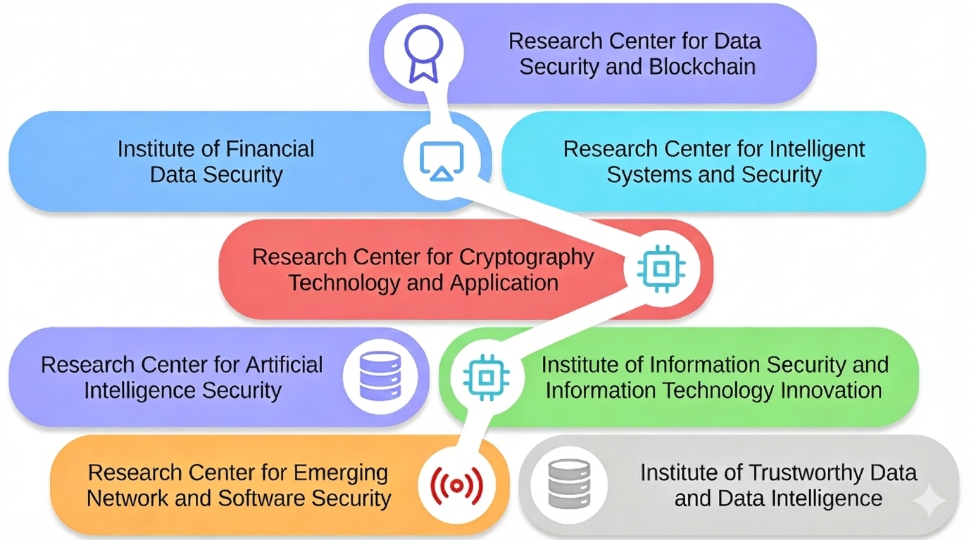 The School is positioned at the forefront of domestic and international cyberspace science and technology development, fully leveraging its disciplinary characteristics and advantages. It has established national and provincial-level platforms including the Beijing Key Laboratory of Intelligent Transportation Data Security and Privacy Protection, the Educational Industry Applied Cryptography Research Center, and the Central and State Organs Secrets Protection Training Platform. The School has undertaken numerous key projects including National Natural Science Foundation Key Projects, Key Projects in Secrets Protection Research, and Major Projects of China Railway Corporation. Significant achievements have been made in areas such as Internet of Things (IoT) security, blockchain technology, artificial intelligence security, cryptographic protocols and applications. These achievements have been implemented across various domestic industries including defense security, secure intelligent transportation, and smart cities. These endeavors have made outstanding contributions to serving major national and industry strategic needs, supporting local economic development, functioning as a think tank, and educating and cultivating talent. The School has developed into an integrated base for cyberspace science and technology research and graduate education with theoretical foundations, technical capabilities, and application platforms, forming a relatively complete teaching and research support system and talent cultivation environment.